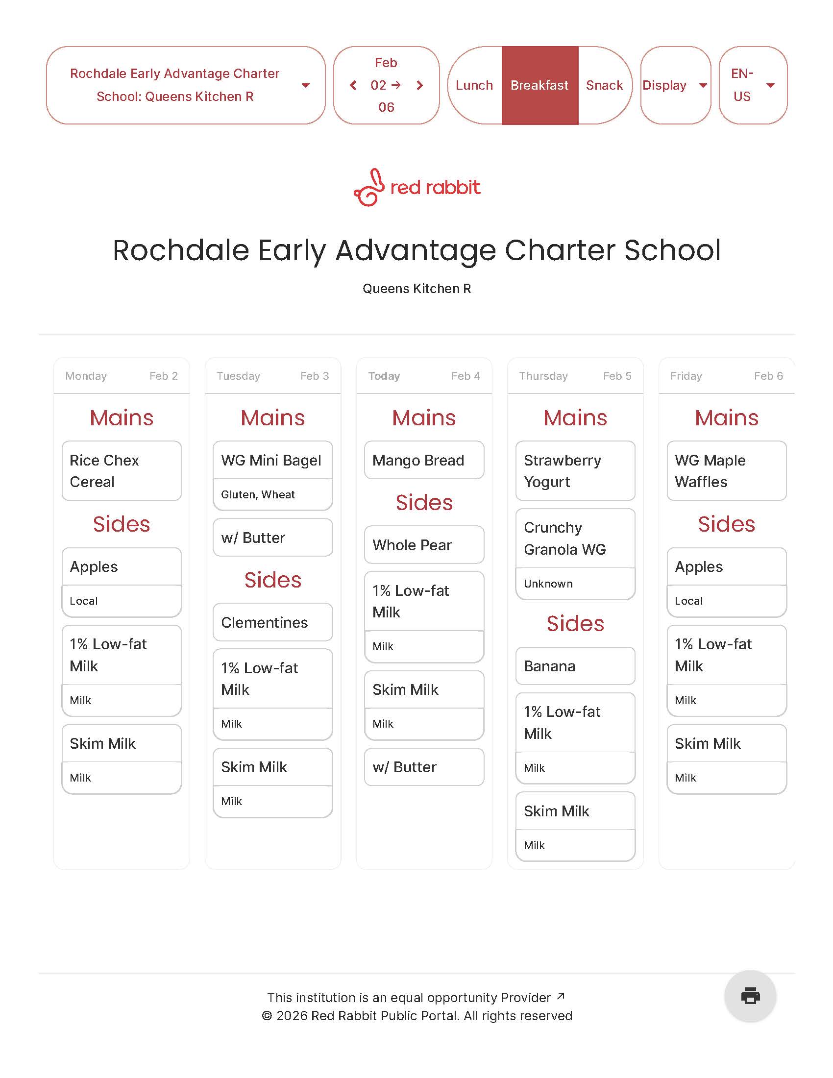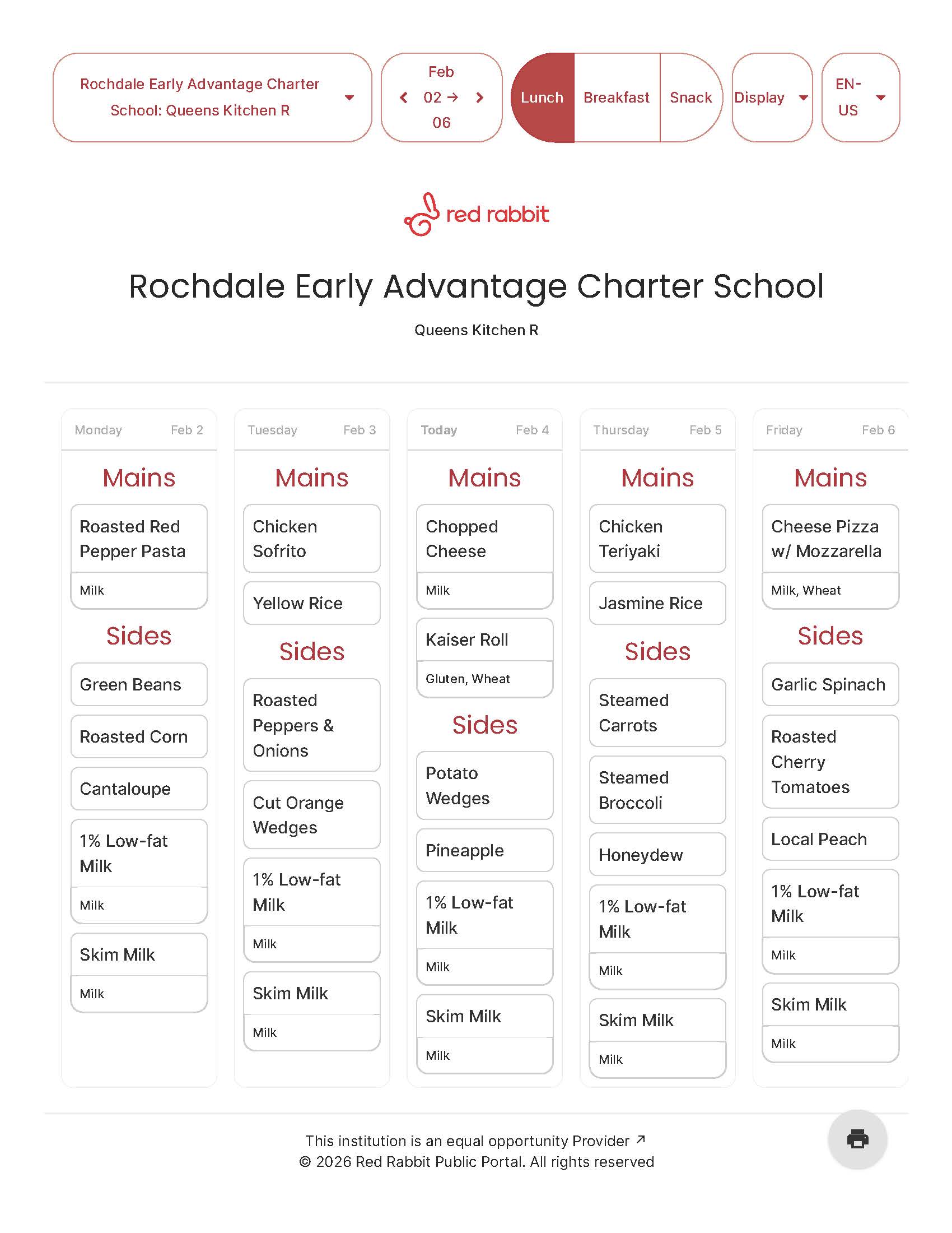 School Menu 2/2 - 2/6